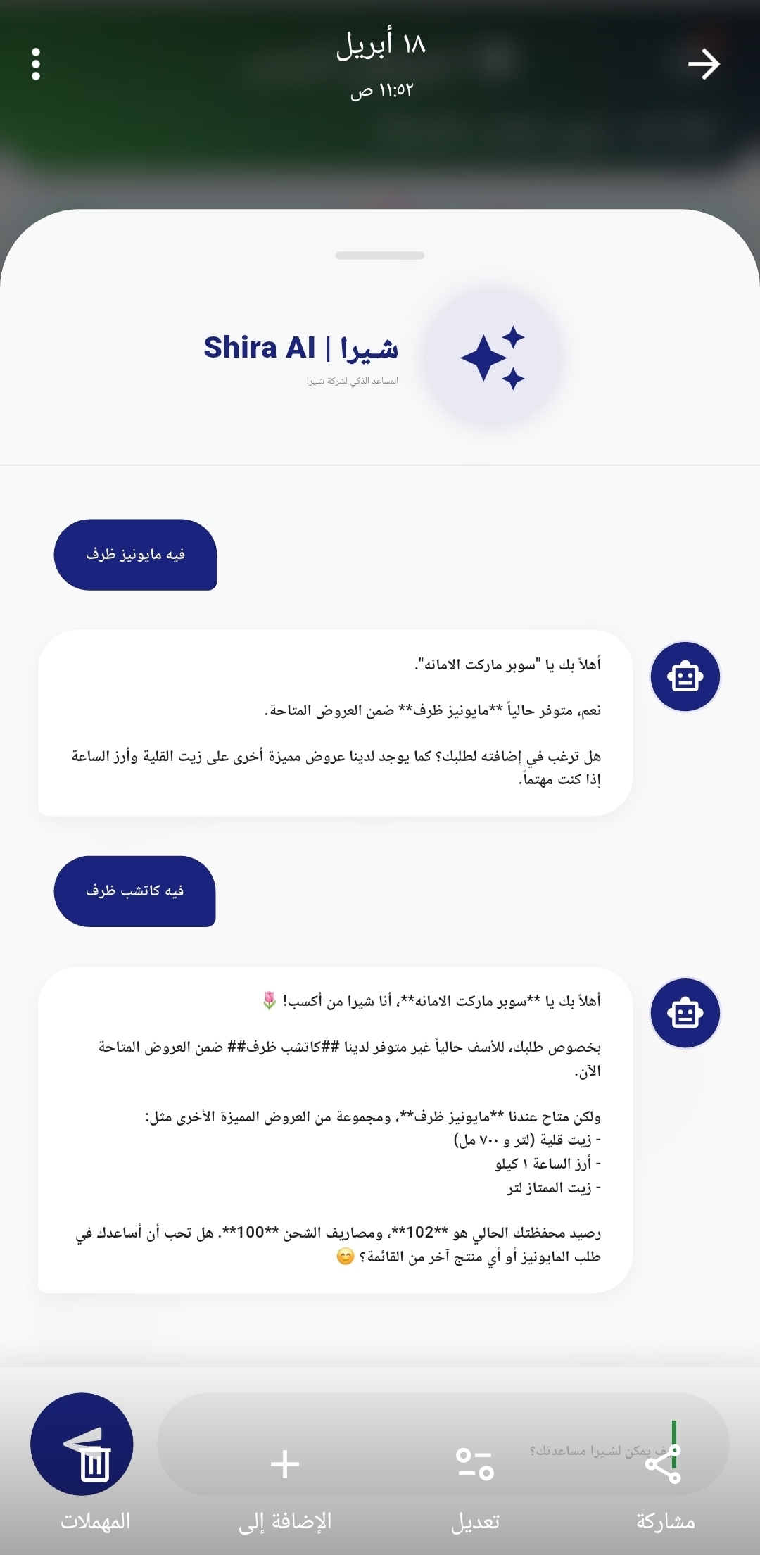 شيرا تراقب عمليات البحث؛ عند طلب منتج غير متوفر، ترسل تنبيهاً فورياً للإدارة لبدء التعاقد عليه.
